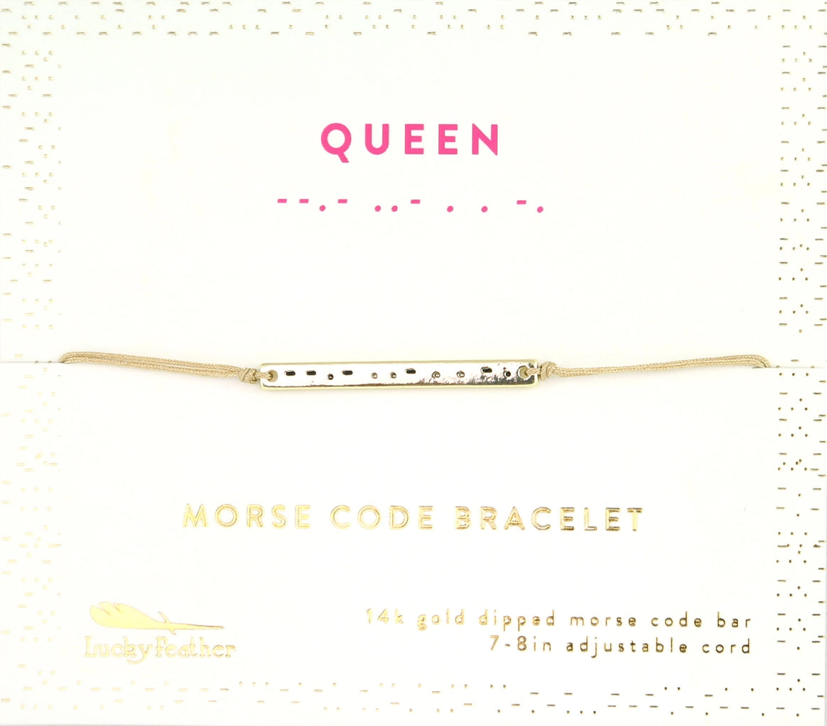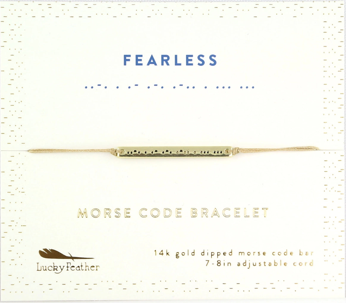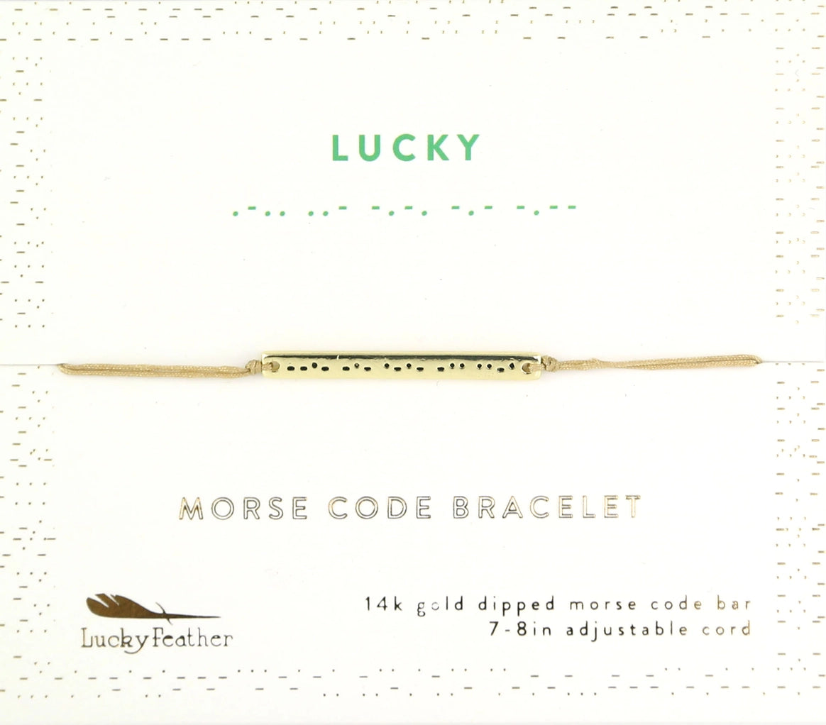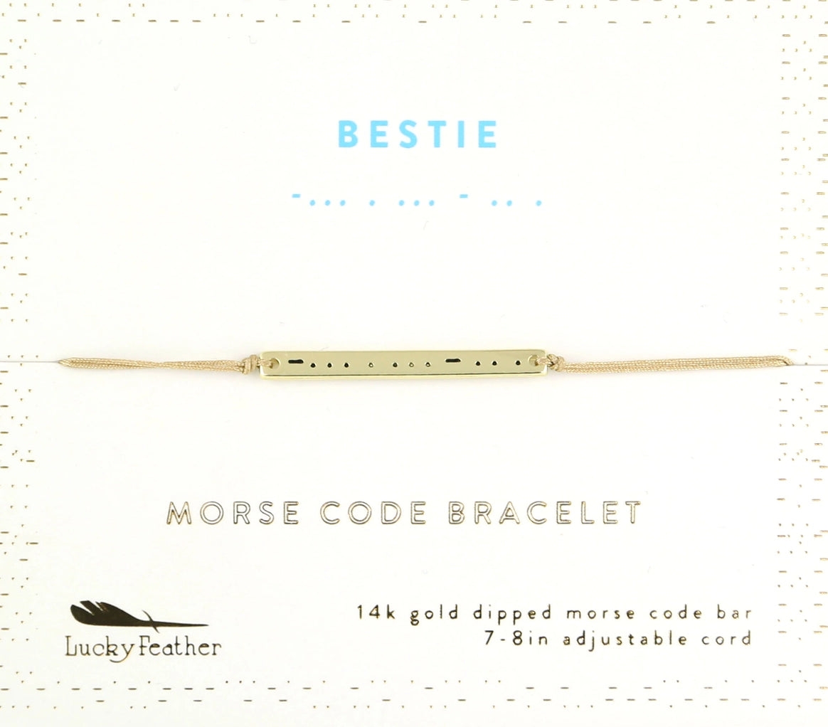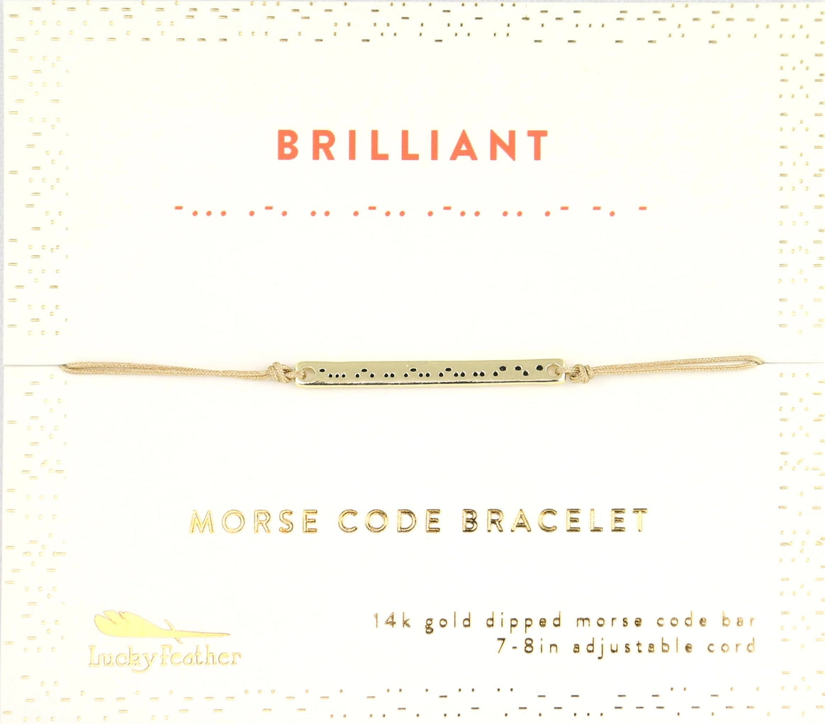 These beautiful 14k dipped bracelets have a word in Morse Code printed on outer gold bar, but inside, when it is turned over is the word in English. Truly a secret message! 7-8" adjustable cord